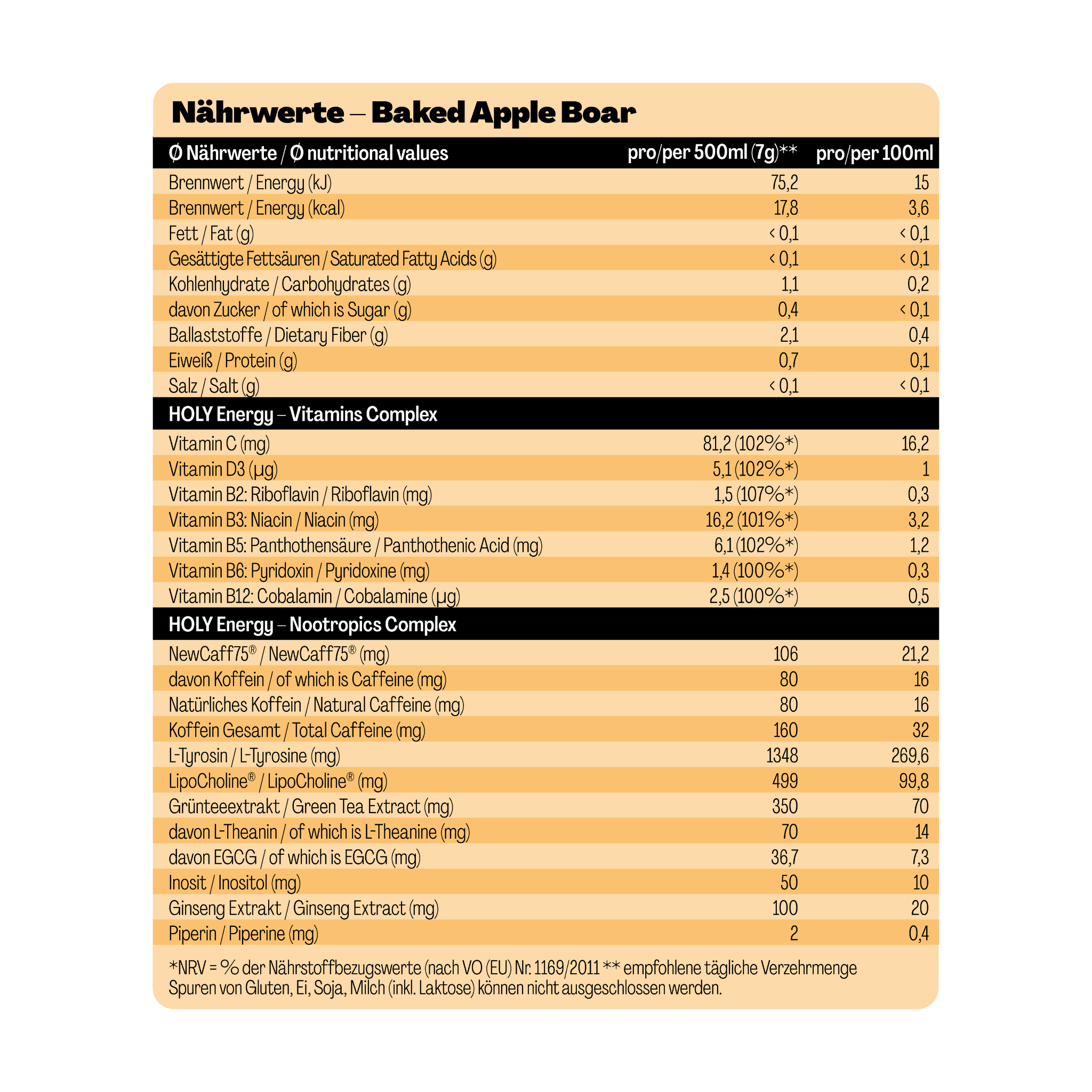 - HOLY enthält auf 500ml nur 0,5g Zucker & weniger als 20 kcal pro 500ml – gängige Eistees haben etwa 40g Zucker und 165 kcal.